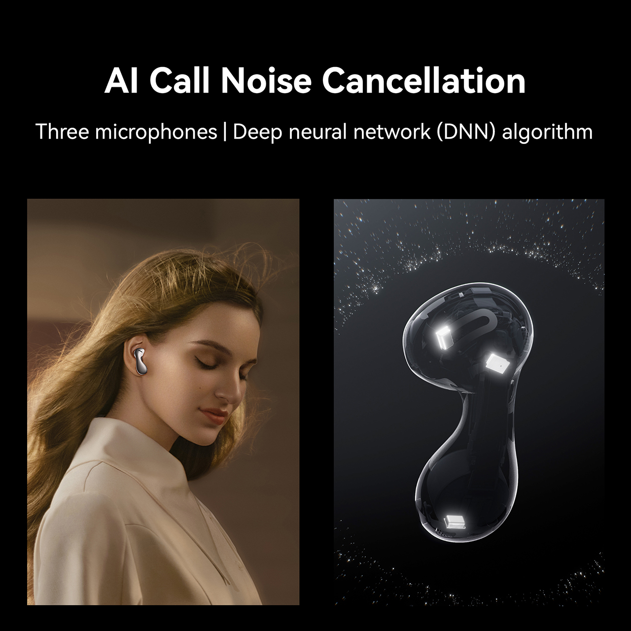• AI Call Noise Cancellation | The earbuds come with three microphones and a deep neural network (DNN) algorithm to enhance your voice and reduce background chatter, so that every call is as clear as can be.