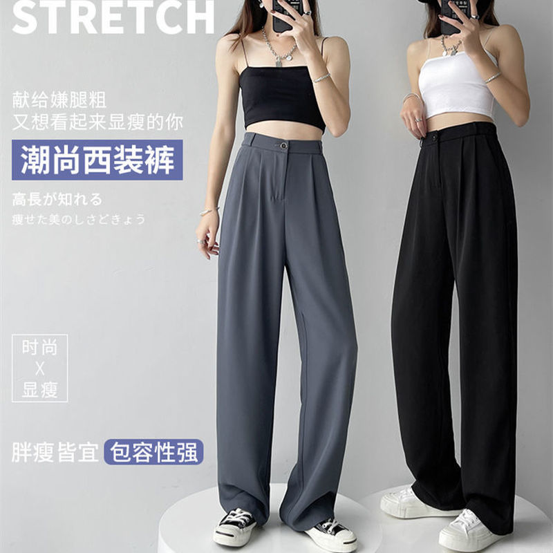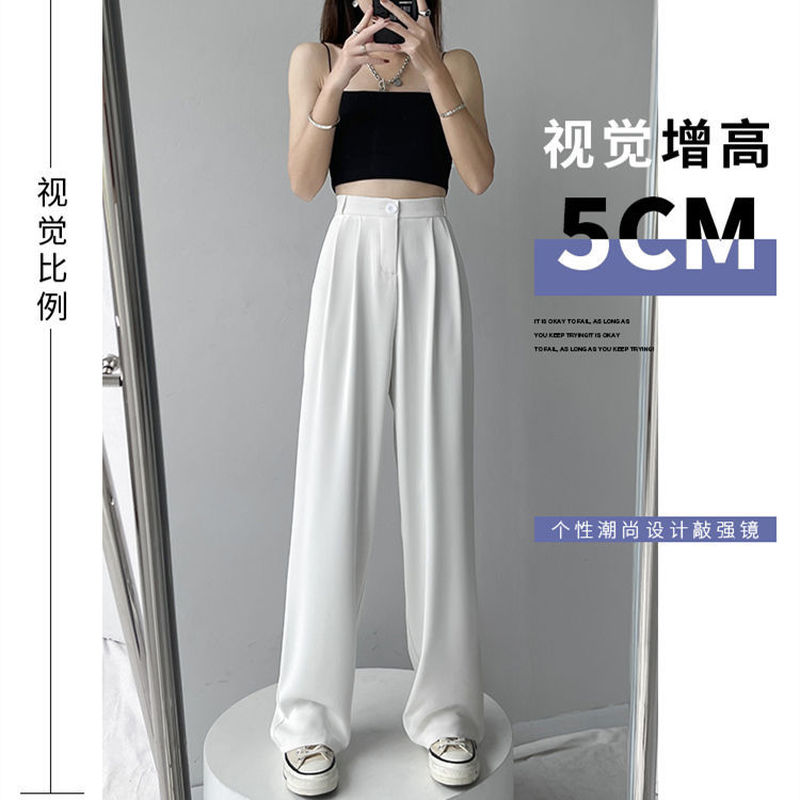 HolidayQueen Suit Pants Women's Summer Straight Wide-leg Pants Ice Silk Thin Loose High Waist Slim Trousers Free Shipping HQP0054