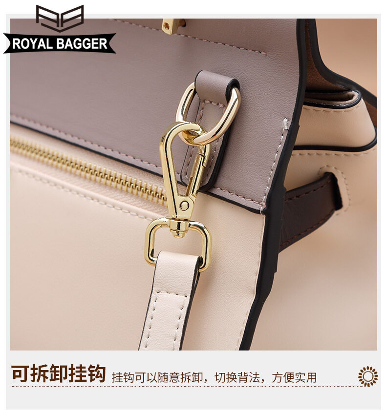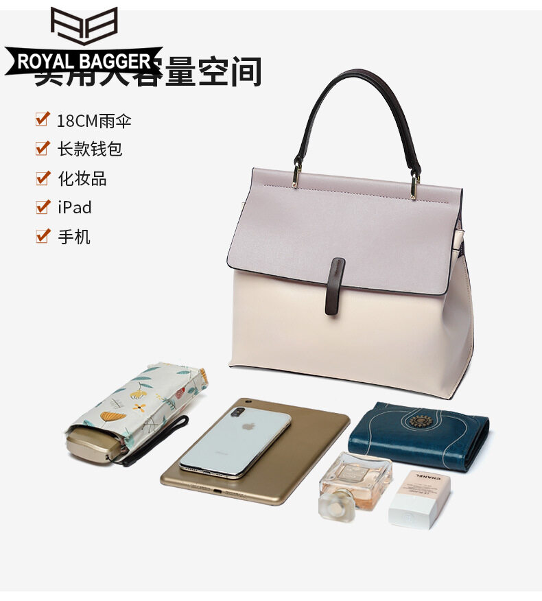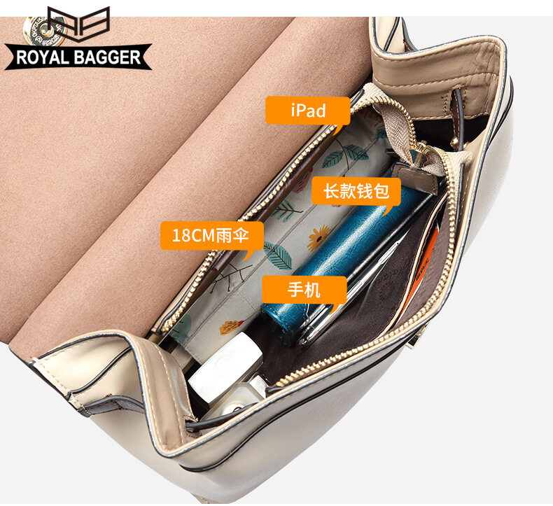 Royal Bagger New Fashion Handbag for Women Genuine Leather Casual Simple Girl Shoullder Bags Large Capacity Elegant Ladies Crossbody Bags