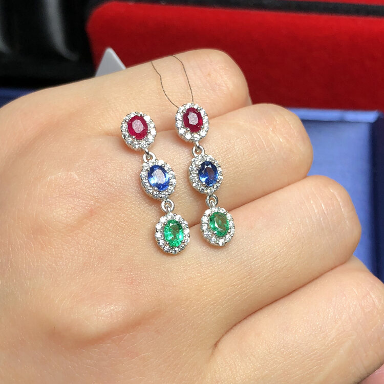 Colored Gems Stone Jewelry 925 Sterling Inlaid Natural Colored Stone Earrings 3*4 Finished Colored Gems Earrings