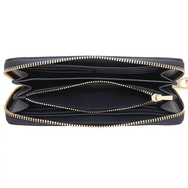 Interior features 1 zip coin pocket, 12 card slots, 2 slip pockets and 3 full-length bill compartments.