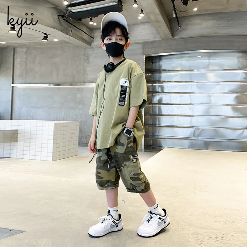 KYII Boys summer suit short sleeved two piece Set kyb027