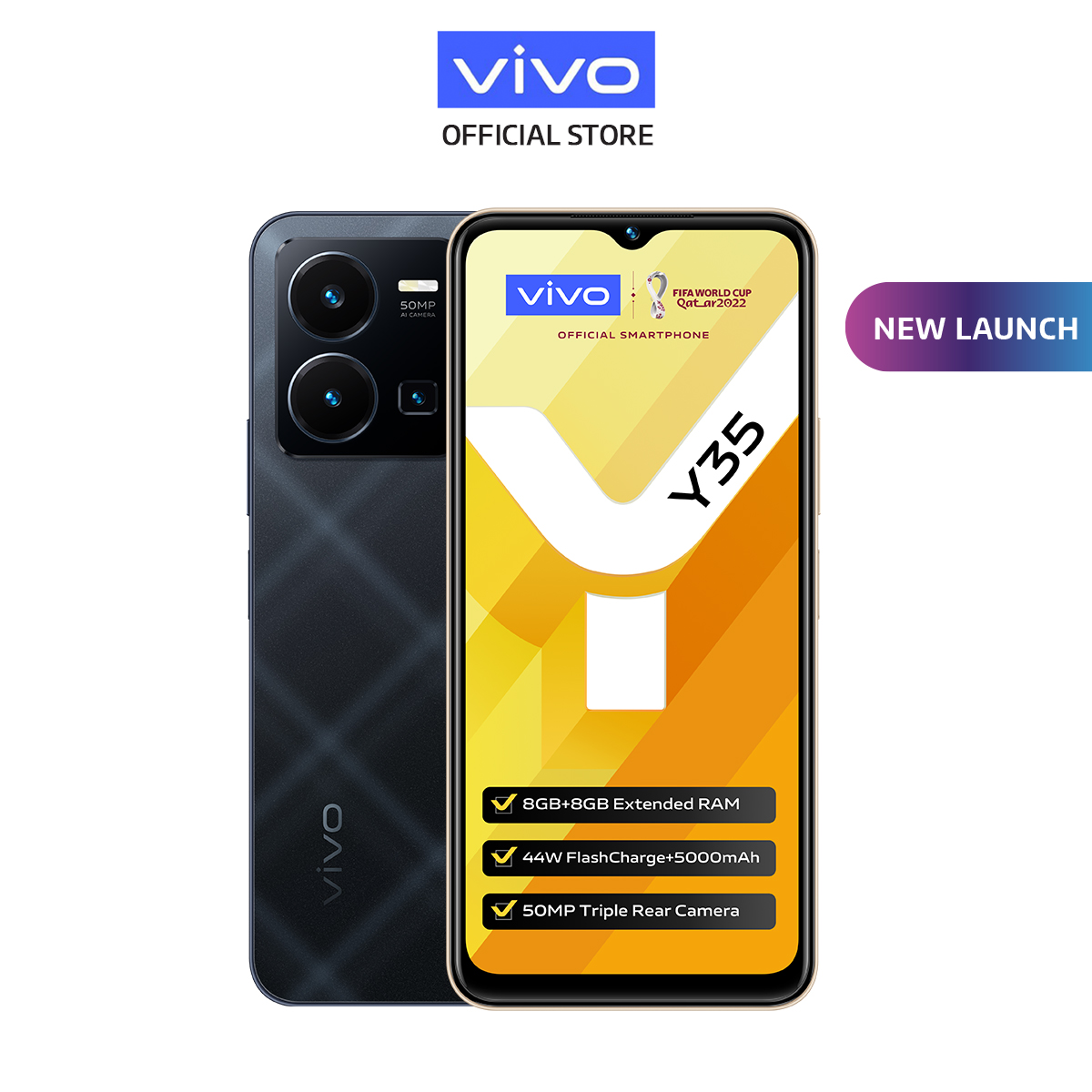 vivo Y35 [8GB+8GB/128GB] / 5000 mAH + 18W Fast Charge / 44W FlashCharge / 50MP Main Camera