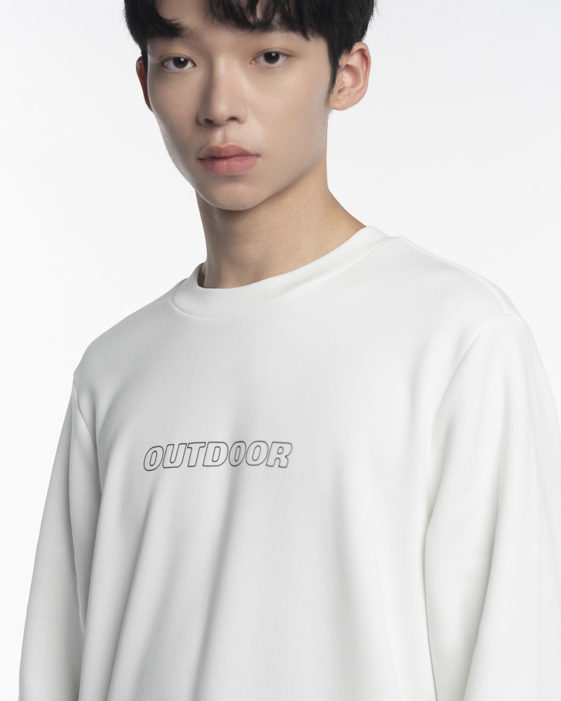 Yishion Men Solid Coloured Long Sleeve Sweatshirt with Outdoor Slogan (White)