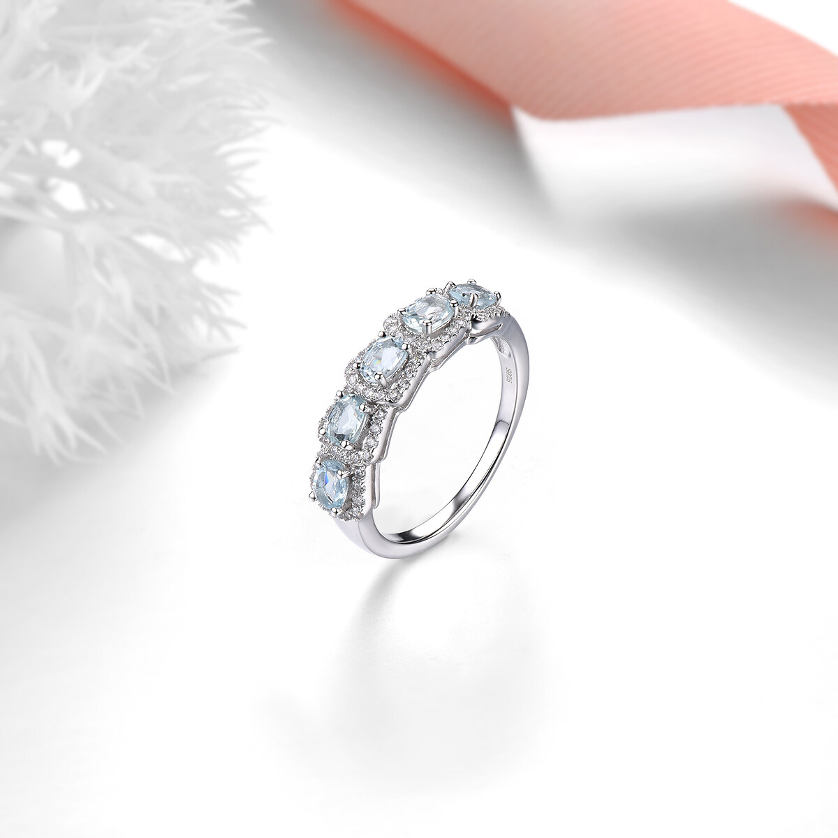 Silver S925 Ring Genuine Natural Aquamarine Multi Gemstone Design Women Top quality Style Jewerly Gifts For New Years