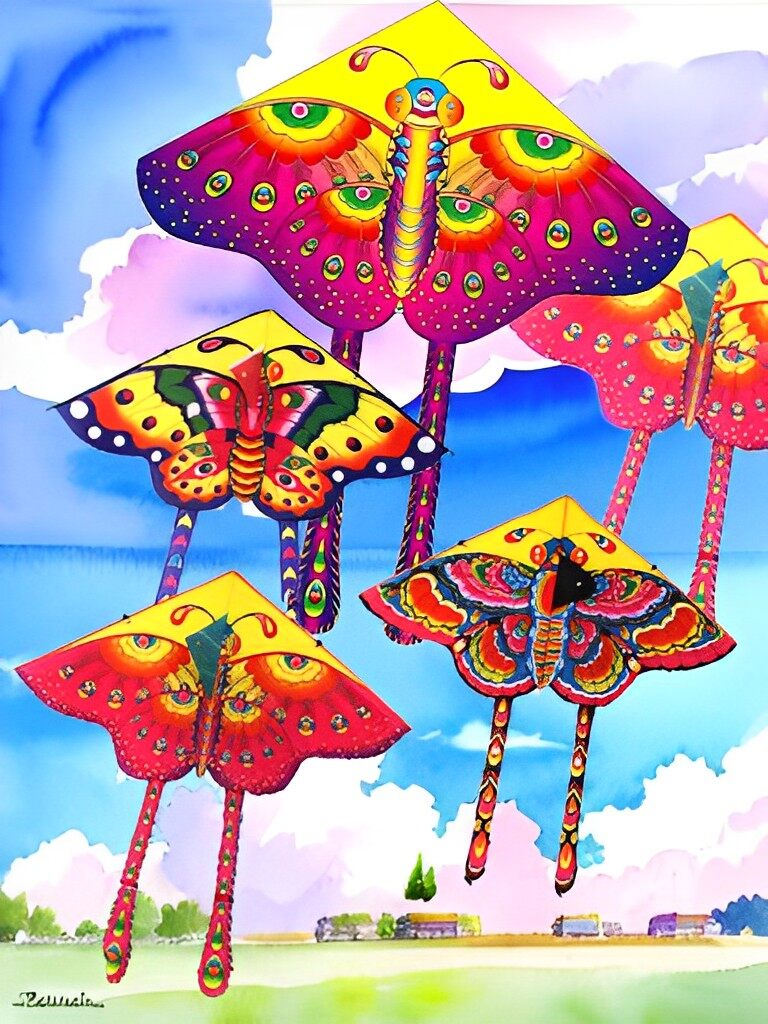 HYG kite toy 90cm butterfly kite + 50m kite line triangular kite cartoon butterfly gift for children outdoor games